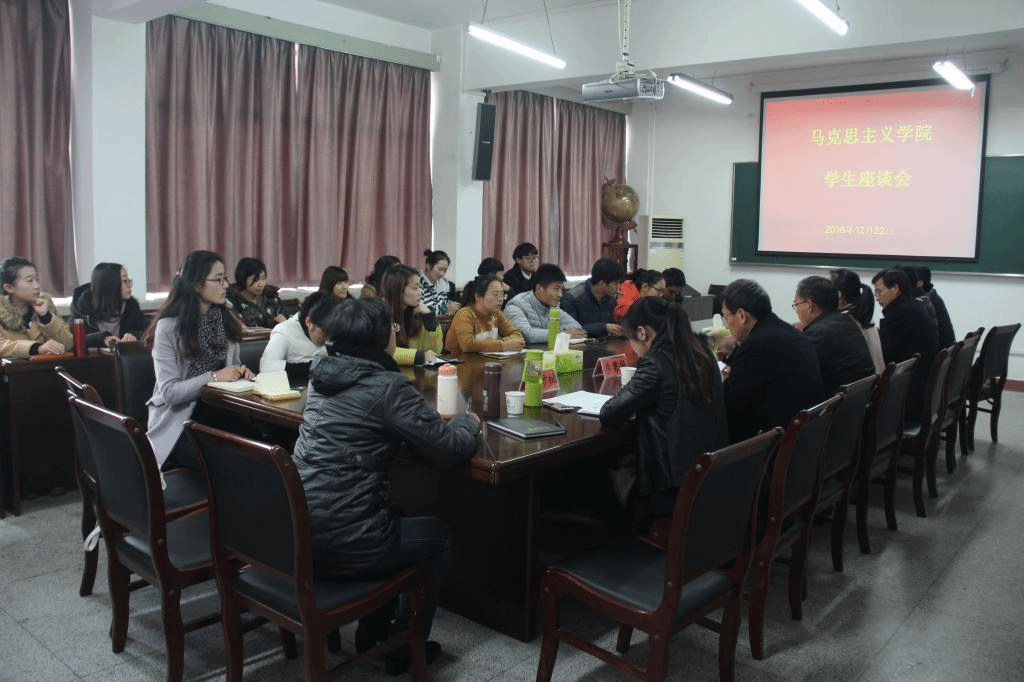 12月22日下午,马克思主义学院2015级、2016级研究生座谈会在衣锦实验楼612召开。校党委委员、宣传部部长、马克思主义学院院长胡祖吉,学院党总支书记兼副院长李勇华,学院相关负责人、班主任、导师和学生近30人参加座谈会。