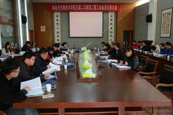 会议听取并审议了学院分工会工作报告,审议通过了《林业与生物技术学院“十三五”规划》,审议了学院财务工作报告和工会财务工作报告,通过了大会决议。
