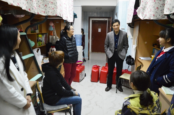 11月22日晚,在学生办辅导员的陪同下,信息学院党总支书记方陆明和领导走访了C3、C10部分大一新生寝室。