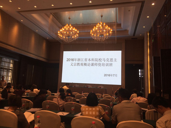 为了贯彻落实全国和全省宗教工作会议精神,并为下学期全省本科院校开设“马克思主义宗教观概论”课做好师资准备,省教育厅决定于 2016年7月25--26日在余杭临平举行师资培训,我校马克思主义学院俞田荣、丁峰两位老师参加培训。