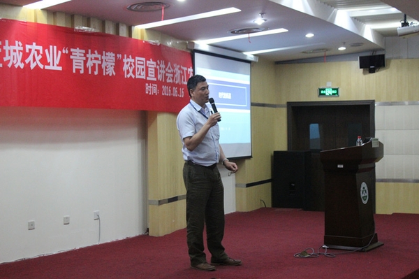 6月16日下午,蓝城农业“青柠檬”校园宣讲会在我校东湖校区举行,农学院院长朱祝军、学院学生工作负责人与学生代表们一起参加了本次宣讲会,蓝城农业有限公司总经理谷建潮及总经理助理叶晖结合自身经历和就业的相关话题,与在座师生进行了交流。