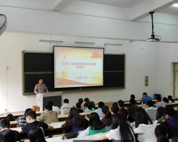 5月19日,经济管理学院在衣锦校区召开“两学一做”专题党课暨学习教育部署会。会议由院党委书记冯金明主持,学院全体党员参加会议。