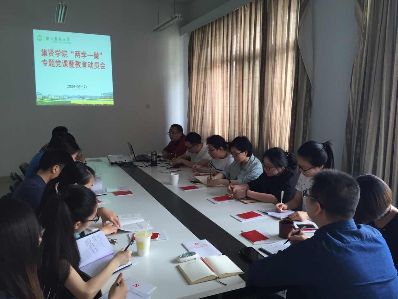 5月19日,集贤学院“两学一做”学习教育部署动员会暨专题党课在学院会议室举行,学院全体党员参加。