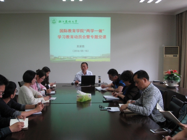 5月18日中午,国际学院召开“两学一做”学习教育动员会。学院党总支委员和全体党员参加会议。院长兼党总支书记吴家胜主持会议并讲专题党课。
