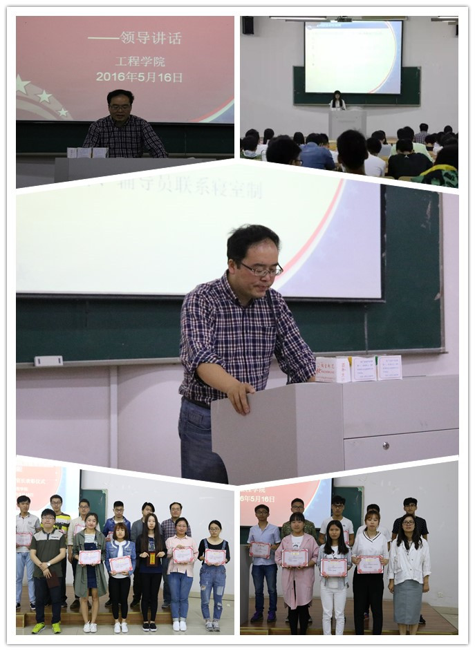 5月16日,工程学院举行木文化节暨文明寝室建设表彰大会。学院学生工作负责人,学生办主任,辅导员及全体寝室长出席会议。