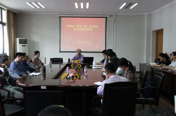 5月19日,理学院总支书记章继胜对学院“两学一做”学习教育进行了全面部署并授课,学院全体党员参加。