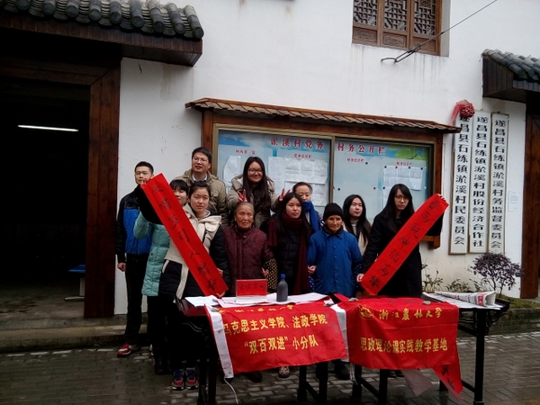 挂职锻炼教师的吴广瑞带领“三送下乡”和“寻文化之源,扬文化之根”大学生社会实践团赴遂昌县石练镇开展实践活动。实践团赴淤溪村、淤头村参观学习,得到了石练镇的热烈欢迎和大力支持。当地村委会委员介绍了淤溪村的历史现状和“班春劝农”大型祭祀文化活动。实践团在当地便民服务中心开展了法律咨询公益活动、送春联活动及农村居民养老、社会保障和幸福指数课题调研活动。