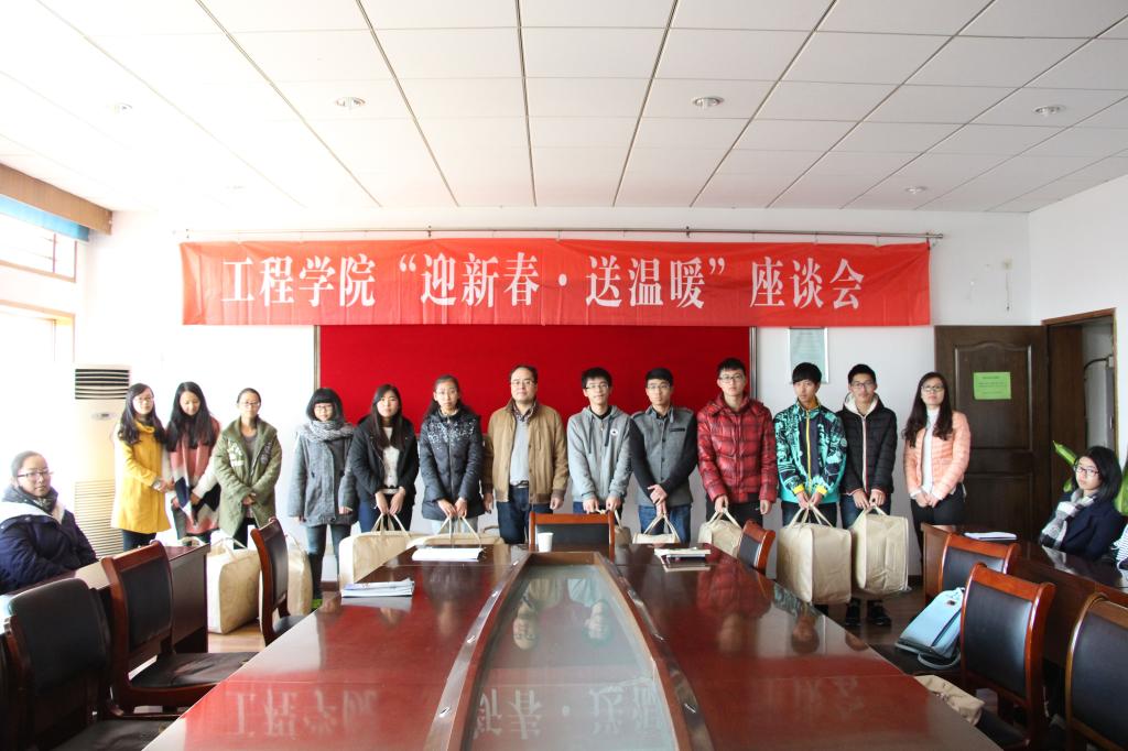 12月4日中午,工程学院第十四届“迎新春,送温暖”活动在集贤326会议室举行。学院学生工作负责人、辅导员和学院家庭经济困难学生代表60余人参加活动。