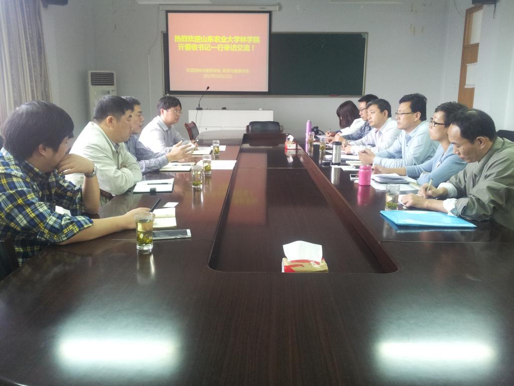 10月22日下午,山东农业大学林学院党委书记亓爱收一行到园林学院、林生院,就学科建设、专业建设及“十三五”规划编制等方面的工作进行交流。