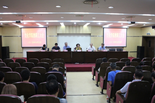 9月5日下午,文化学院召开全院教职工大会,传达学习学校暑期中层干部扩大会议精神,总结回顾学院上半年工作,并就下半年工作做了部署。学院党政领导班子及全体教职员工参加。会议由院党委书记王亚伟主持。
