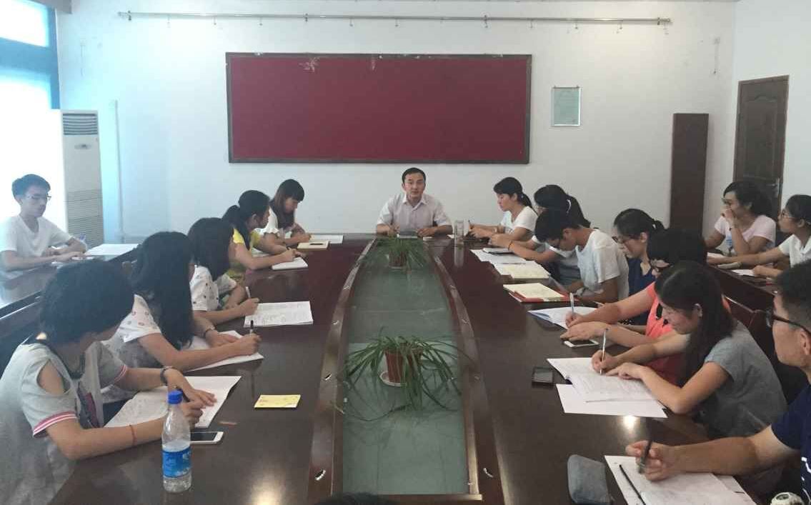 首先辅导员老师介绍学院2015年暑期实践组队情况,通过前期积极申报,今年学院共组成27支实践团,涉及电商创业、助力三农、绿地养护、生态环保等多个主题,跨省内16个县市,内容涉及面广,提醒队员需在酷暑面前不畏困难,注意人身安全,在实践活动中提高社会认知、锤炼自我意志。其次学生干部具体布置了实践活动的实施方法及流程、报销途径及汇报制度,对与会人员进行了安全教育及宣传培训。