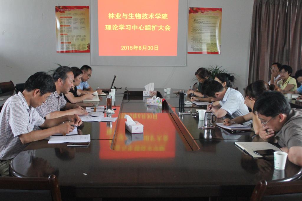 6月30日下午,根据学院“三严三实”专题教育安排,学院党委理论学习中心组以“自觉践行‘三严三实’,贯彻落实‘四个全面’的战略布局,扎实推进学院改革发展”为主题,召开专题学习扩大会。学院党委理论学习中心组全体成员及各教工党支部书记及委员参加了会议,会议由学院党委书记孙勤龙主持。