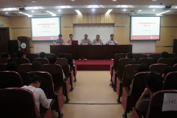 会上,侯锡铭对2015年村官学院暑期基层实践的安排和实践活动流程进行了详细介绍。王长金作动员讲话。他指出,基层实践是村官学院重要的教学实践环节。大家要严格按照教学大纲开展实践活动,学以致用,让课堂知识在实践中巩固提升。暑期实践也是一个成长成才的一个环节。参加基层实践是一个成长的过程,想要更好的融入社会就要敢于在基层火热的实践中历练。基层实践也是一个成熟的环节。在实践中学会面对问题、解决问题,学会在恶劣的环境中适应社会。他还对同学们提出了三点要求:一要听从指挥;二要敢于担当;三要团结合作。