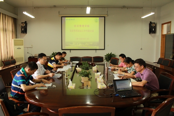 会上,冯金明首先传达了全省高校思想政治工作会议精神以及学校相关文件要求,介绍了前期调研中所了解的学院师生思想状况,详细分析了学院思想政治工作面临的问题。接着学院相关负责人对学院为加强思想政治工作,新拟定或修订的三项制度进行了说明,制度包括《浙江农林大学经济管理学院院领导接待学生制度(暂行)》、《浙江农林大学经济管理学院联系学生寝室制度(修订稿)》和《浙江农林大学经济管理学院‘家庭经济困难学生发展性资助’暂行管理办法》。与会人员就如何加强学院思想政治工作,进行了热烈的讨论,结合实际工作提出了建议,同时对即将出台的三项制度,提出了修改意见。
