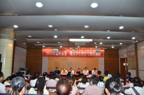 5月26日上午,2015年温岭市第一期大学生村官专题培训班在我校东湖校区正式开班。50位来自温岭市各街道社区、村的大学生村官来到我校村官培训基地进行为期5天的培训,此次培训由温岭市委组织部和我校村官学院联合举办。温岭市委组织部常务副部长、人才办主任姚仁杰,法政学院院长、村官学院常务副院长王长金,法政学院、学工部、校团委相关负责人及温岭市委组织部相关人员出席了培训班开班仪式。