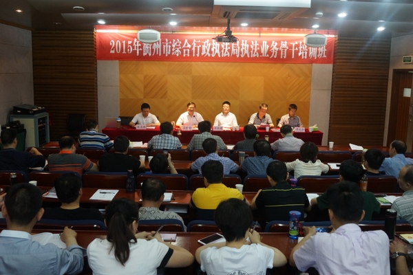 5月30日上午,2015年衢州市综合行政执法业务骨干培训班在我校活动中心视听室202正式开班。本次培训由衢州市综合行政执法局和我校法政学院共同组织,来自衢州市的46位城管干部学员代表来到我校进行为期5天的培训。衢州市综合行政执法局党委书记、局长方庆建,党委委员、副局长张晓光,法政学院院长王长金,法政学院社会学学科建设负责人等出席了本次开班仪式。2013级、2014级农业科技组织与服务、城市管理专业研究生参与旁听。