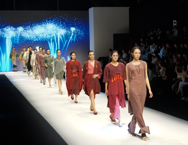 这一场以时尚,生态,灵动,创新为主旋律,将服装与服饰设计与中国传统文化,生态观念和艺术创意相结合,把未来创意,都市,婚纱礼服和茶服四大主题系列通过T台展现,诠释丰富的文化内涵,倡导生态和谐理念,传递了我校鲜明的生态文化观。