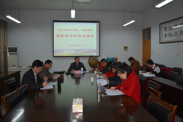 3月20日上午,马克思主义学院、法政学院组织召开了2014年度领导班子民主生活会。校党委副书记余杰到会指导并讲话,组织部、纪委办相关负责人参加了此次会议,会议由学院党总支书记、副院长李勇华主持。