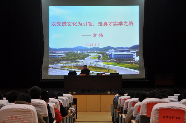 3月9日晚,校党委副书记方伟作客林生院名师讲坛。他以“以先进文化为引领,走真才实学之路”为主题,向在场学生们作了一场生动的报告。林生院院长李春阳等相关领导、老师及500余名学生参加了此次报告会。