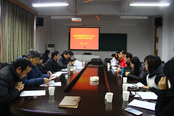 1月6日下午,园林学院辅导员2014年度工作述职报告交流会在学院会议室举行。学院党委书记王小德、学生工作负责人及党委委员担任现场评审。