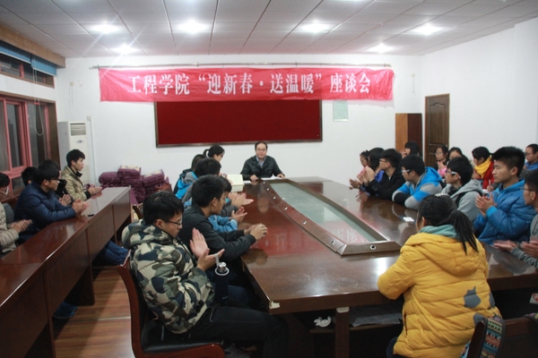 12月9日晚,工程学院在集贤326举行第十三届“迎新春,送温暖”活动,学院学生工作负责人、辅导员及学院家庭经济困难学生代表40余人参加了活动。