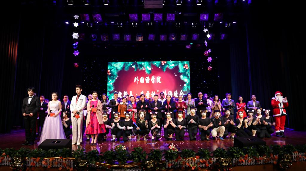 12月21日晚,外国语学院“迎新年·庆圣诞”外语晚会在活动中心影剧院隆重举行,副校长张立钦,校党委委员、宣传部长陈永富等领导及学校各职能部门、二级学院的负责人应邀观看了晚会。