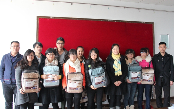 现场举行了简单而温馨的赠送仪式,13位大一经济困难学生高兴地领到了温暖的棉毯,并对学院在寒冬里送上的温暖表示感谢。