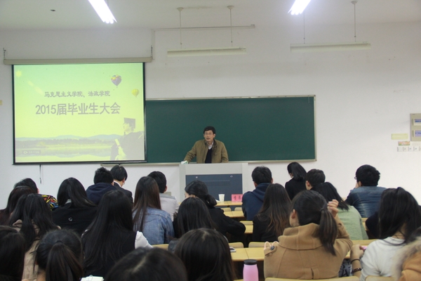 11月27日下午,马克思主义学院、法政学院2015届毕业生大会在教4207召开,法政学院党总支书记兼副院长李勇华、学院相关负责人、毕业班辅导员以及全体2015届毕业生参加了会议。