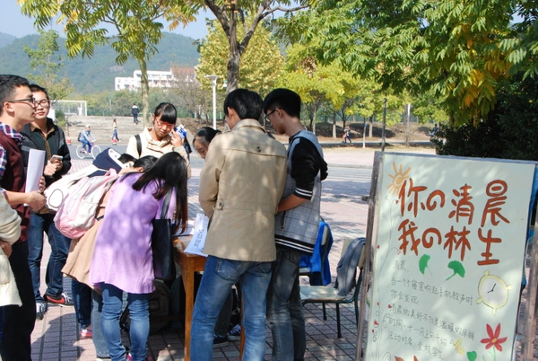 临近期末,气温逐渐下降,大学生早晨起床变成了难事儿。为了响应学校“早起十分钟,早餐不打包”的活动倡议;促进全校不同年级、不同专业学生学习方法和知识的沟通交流;让大家通过结交“早起的学习伙伴”的方式养成良好的生活学习习惯,林生院分团委在校园内发起了“早安,大学”叫早倡议活动,鼓励同学们通过相互监督和协助的形式早起,早读。