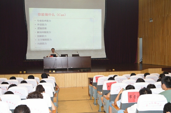 会上,冯金明针对近年来毕业生就业形势,从“剖析自己,正确定位;精心准备,应对自如;了解流程,减少麻烦”三点出发,为同学们提出指导性建议。冯金明指出正确定位的重要性,希望同学们正确认识并思考“你想要什么”和“你能做什么”。在接下来的9个多月中,通过培训、考研、实习等途径进一步提升自己。同时要重视收集就业信息,充分挖掘社会资源,结合自身的专业需求,善于收集、处理及采用就业信息,从而提升就业成功率和就业质量。冯金明还强调要认真对待签订就业协议书,并预祝2011级毕业生顺利就业。