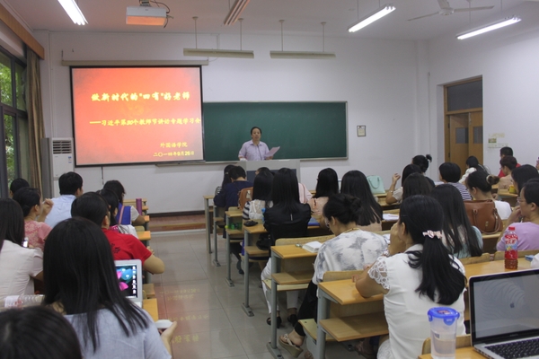9月25日下午,外国语学院召开全体教职工大会,专题学习习近平总书记在第三十个教师节之际与北师大师生代表座谈时的重要讲话精神。学院领导班子、全体教职工参加了本次会议。学院党总支书记张敏生主持学习会。