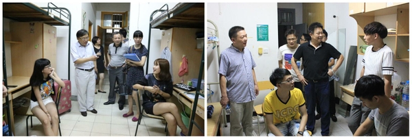 新生报道结束后,继教学院院长朱永法、党总支书记董升忠等学院党政领导带领两组工作人员走访了学生公寓,了解报到后住宿安排情况,与新同学们交流畅谈,详细征询他们对住宿条件的意见建议,并及时解决他们生活上的问题和困难。为帮助新同学尽快适应大学生活,辅导员、班主任、团学干部也深入新生寝室,详细介绍了开学期间的安排与注意事项,特别强调了学院各项管理规定。
