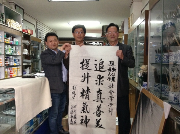 会后,郑杭生教授即兴挥毫泼墨,为学院社会学学科赠送墨宝“追求真善美,提升精气神”。