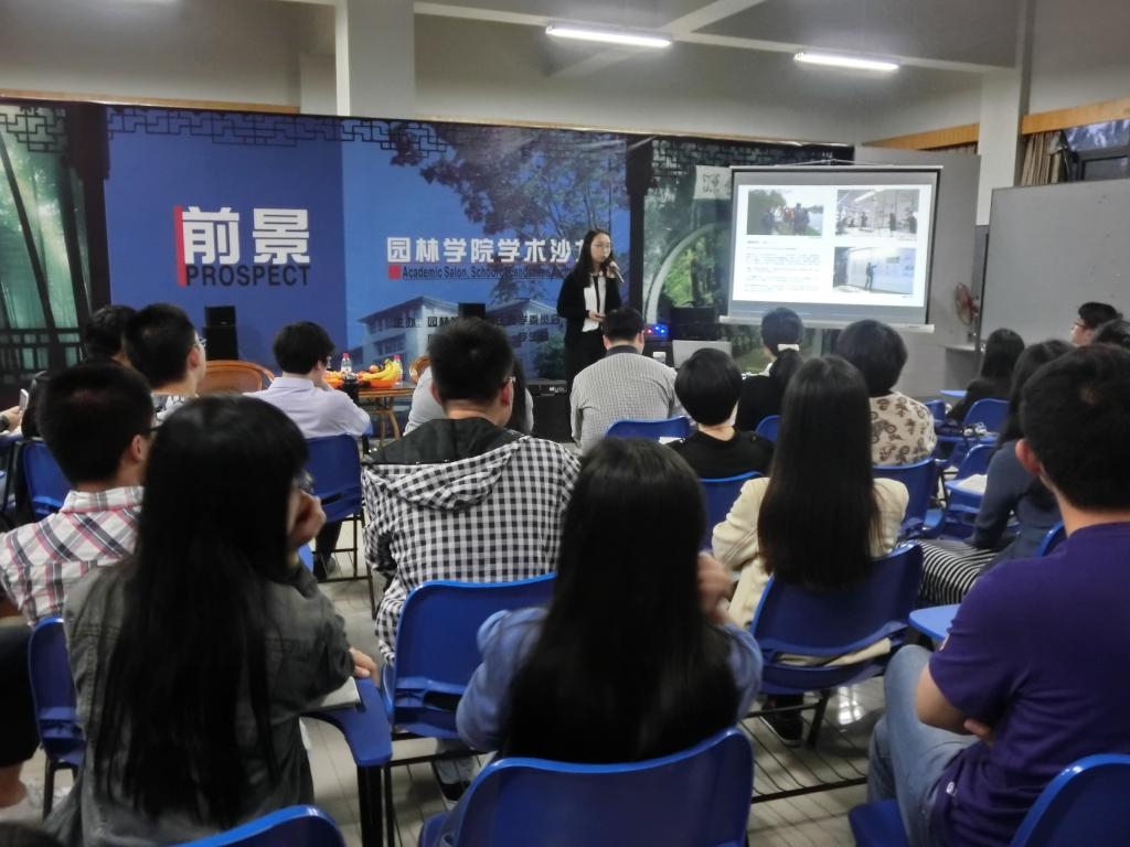 5月18日晚,园林学院“前景·Prospect”第十七期学术沙龙举行。本期学术沙龙以“德国景观设计教育与学术研究动态”为主题,邀请了德国慕尼黑工业大学建筑学院景观设计学系在读博士生谢雨婷担任主讲嘉宾。园林学院副院长王欣出席了本期的沙龙,学院相关专业教师和研究生参加了沙龙。