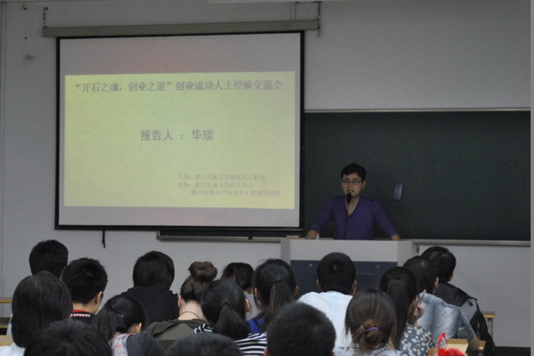 5月27日,杭州普乐金属制品有限公司创办人——华琰,结合自己学习、工作、创业的经历,分享了自己的创业经验,为研究生创业指明了方向。在随后的互动环节中,华琰与在场听众亲切交流,认真回答每一个问题。
