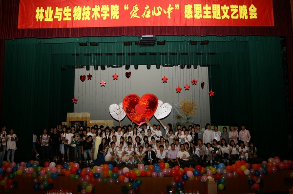 整台晚会节目精彩纷呈,充分展示了同学们一路前行、一路感恩,用心感恩、用爱回报的现代大学生风采。晚会在林学073毕业班全体同学带来的群唱《爱在心中》中圆满落下帷幕。