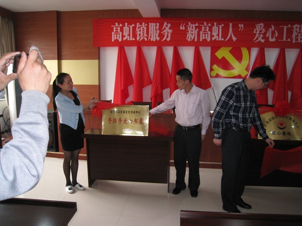 5月27日,由经济管理学院分团委和临安市高虹镇团委共同举办的服务“新高虹人”爱心工程启动仪式在高虹镇文化活动中心举行。经济管理学院党委副书记陈劲松,临安市有关部门和高虹镇领导出席了启动仪式,并为“新高虹人关爱基地”、“爱心中转站”和“手拉手爱心书屋”揭牌。