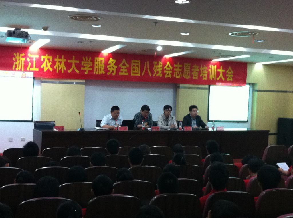 5月28日至29日,浙江农林大学服务全国第八届残运会志愿者培训大会在东湖校区图书馆第二报告厅举行。全国第八届残运会志愿者工作部综合处副处长张坚和我校团委负责人出席会议。