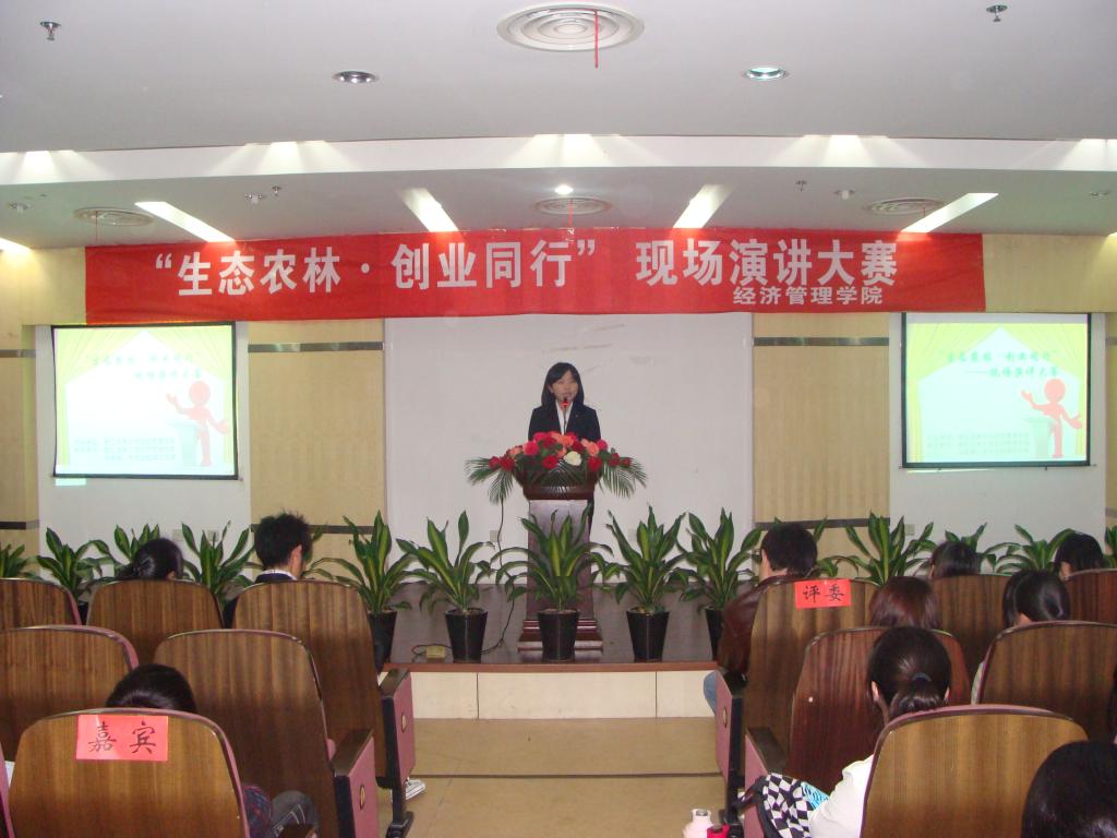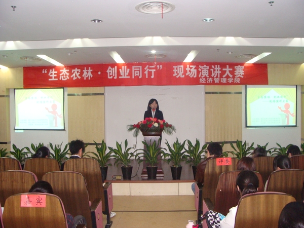 为引领学院广大青年学生树立生态理念,增强创新创业能力,营造生态和谐的校园氛围,4月24日晚,由经济管理学院主办的创业实践系列活动之“生态农林·创业同行”现场演讲大赛决赛在图书馆第二报告厅举行。