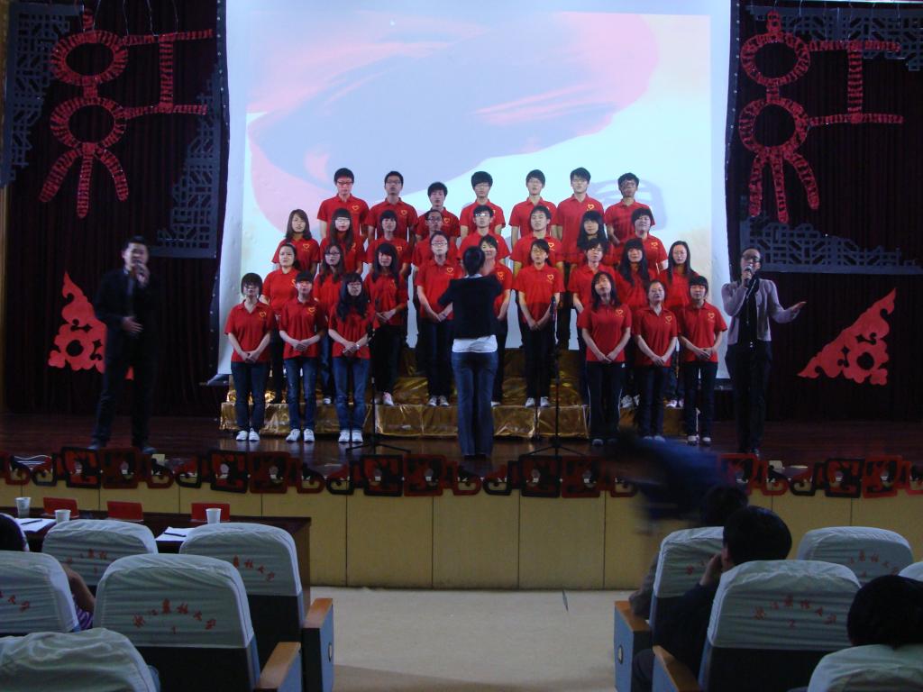 在分团委书记方晶的带领下,全场五百余名共青团员重新高声宣读了入团誓词,誓言让在场的每个人热血澎湃。红歌会上,合唱、独唱、诗朗诵,一个个节目精彩纷呈,激情四溢:高亢激越的《国家》,雄壮奔放的《歌唱祖国》,激昂豪迈的《红旗飘飘》,欢快活泼的《爱我中华》……。整台歌会始终以红色经典歌曲为主题,歌曲生动地再现了中国共产党成立90年来领导全国人民在中国革命和社会主义现代化建设的各个时期坚持不懈、坚强不屈的奋斗历程,见证了中华民族渴望复兴而不懈追求的光辉历史,展现了无数中华儿女万众一心、众志成城的钢铁意志。