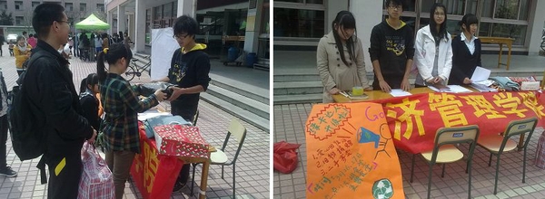 在原有“爱心回收站”活动的基础上,面向全校学生推出“旧物捐赠”及“二手寄卖”活动专区,搜集在校师生闲置、不愿丢弃的衣物等各种有价值的物品,寄放在校内交易市场特设的摊位上由专人代为售卖。