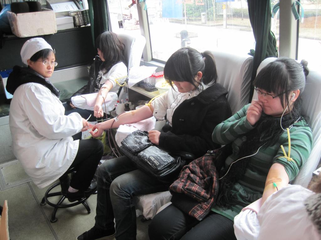 活动开始前,经管学院的青年志愿者们协同血站工作人员做好了充足的准备工作和安全卫生工作。活动在上午九点半准时开始,不少学生陆陆续续来到活动现场咨询、填表。志愿者们热情地接待着前来献血的学生。同学们带着紧张和自豪的心情走上献血车,希望将自己的爱心传递给需要帮助的人。活动接近尾声时,已有几十名同学为爱捋袖,让自己青春的血液继续在需要者的身体里流淌。