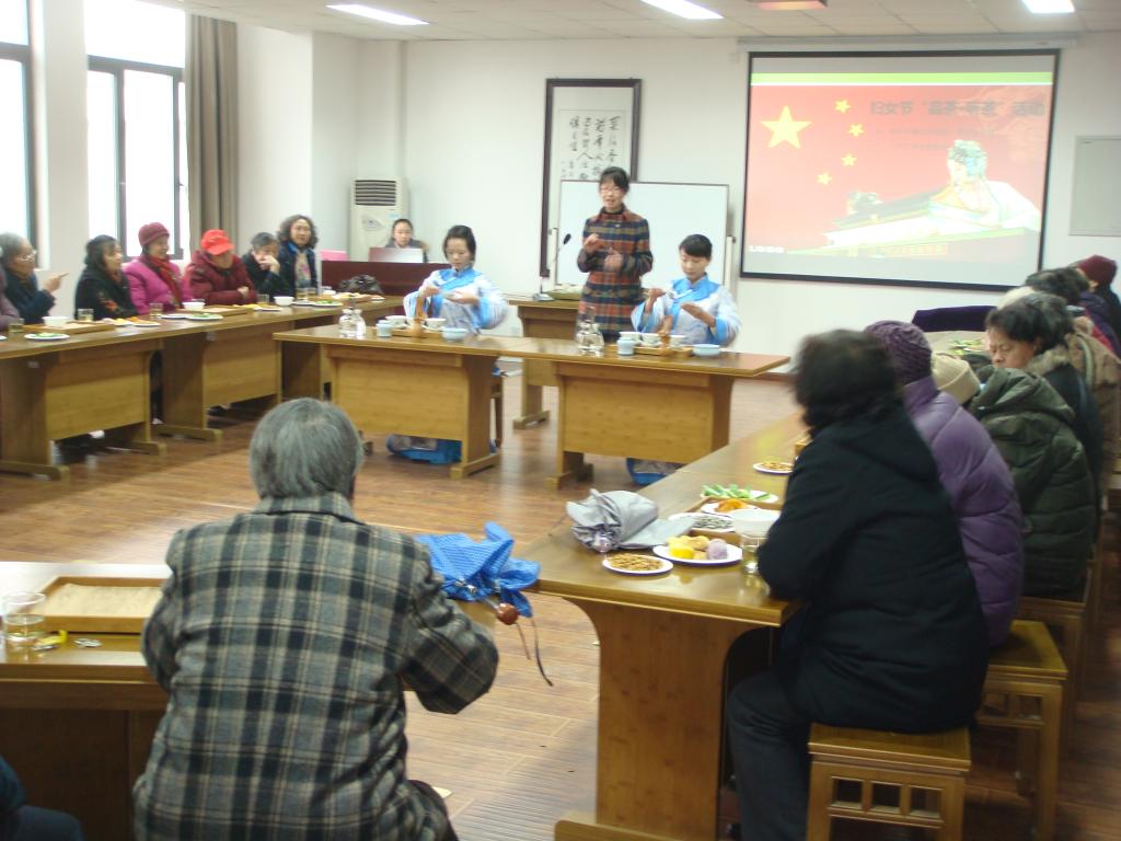 3月6日,由学校社区居委会和校社团联合会、茶文化协会共同举办的“品茶——听茶 共庆三八妇女节”活动在东湖校区茶文化学院茶艺室举办。四十余名退休女教职工与十余名茶文化师生济济一堂,品茶赏茶,茗香绕室。