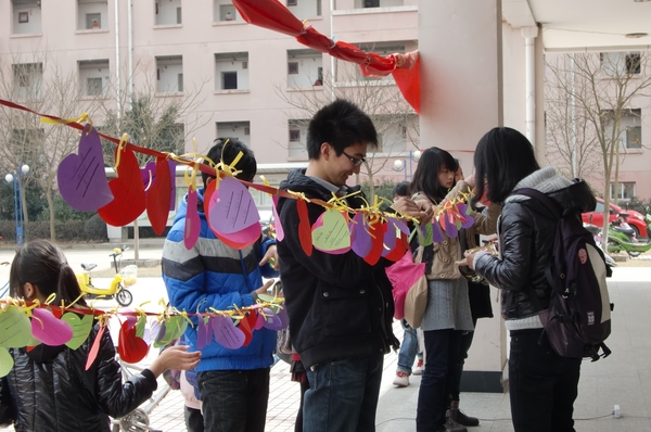 而在东湖、集贤、西径食堂进行的“三行情书”活动更是吸引了过路师生的目光。男生女生都饶有兴趣地将自己的“心里话”写在爱心卡片上,对母亲与师长的感恩、对朋友与爱人的依恋、对爱与被爱的理解,都浓缩成了系于红绳上的三行唯美诗句,随风传递;同时,校学生会的干事们还向广大同学分发了《丁香与康乃馨的对白》妇女节倡议书,让更多同学在了解“三·八”国际劳动妇女节的历史、定义的同时思考了自己的未来。