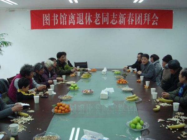 1月11日下午,图书馆内春意盎然,2011年图书馆离退休老同志新春团拜会在此举行。馆领导潘继进、张国泉、各部室主任及十多位离退休老同志出席了团拜会。会议由党直支书记张国泉主持。