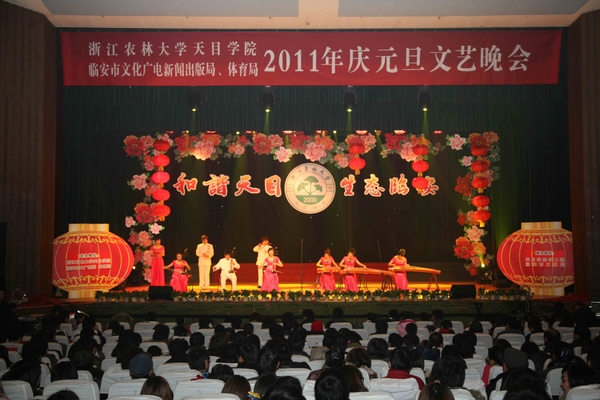 雄虎辞旧,玉兔迎新。12月27日晚,“和谐天目 生态临安”的元旦文艺晚会在临安影剧院举行。本次元旦晚会由天目学院、临安市文广新局、体育局共同举办,天目学院学工部、临安市文化馆承办。出席晚会的领导有临安市副市长裘小民,政协副主席张亚联,广电新局、体育局局长褚林森,农林大学各职能部门和二级学院负责人,临安市各部门负责人,天目学院领导等。