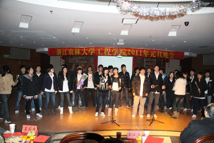 12月25日晚,绿梦休闲吧里热闹非凡,工程学院2011年元旦晚会拉开帷幕。党总支书记王亚伟,工程学院副院长张文标、新生班主任、各年级辅导员出席本次晚会。将近两个半小时的晚会全面展示了“魅力工程学子”的风采,师生其乐融融,共迎元旦佳节。