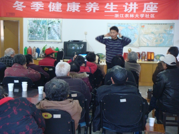 12月21日下午,社区冬季老年健康养生讲座在葡萄园“老年星光”之家举办,邀请了旅游与健康学院卢继东老师为学校退休职工讲解“颈椎与腰椎病的预防与自我保健”知识。浙江农林大学社区四十名退休老教工参加了讲座。