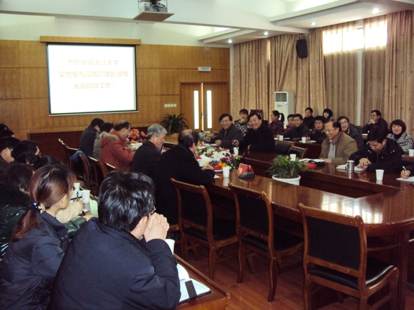 金佩华对浙江大学实验室与设备管理处一行表示热烈欢迎。校实验室工作委员会办公室主任朱永法就我校实验室工作情况作了简要介绍。浙江大学实验室与设备管理处处长李五一介绍了浙江大学实验室工作情况和今后的工作设想;副处长阮慧和冯建跃分别作了“‘十二五’实验室建设规划报告”、“实验室安全管理工作报告”。与会人员认真听取了报告,并就我校实验室建设管理中遇到的问题与浙大实验室与设备管理处领导进行了交流互动。