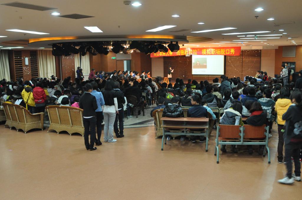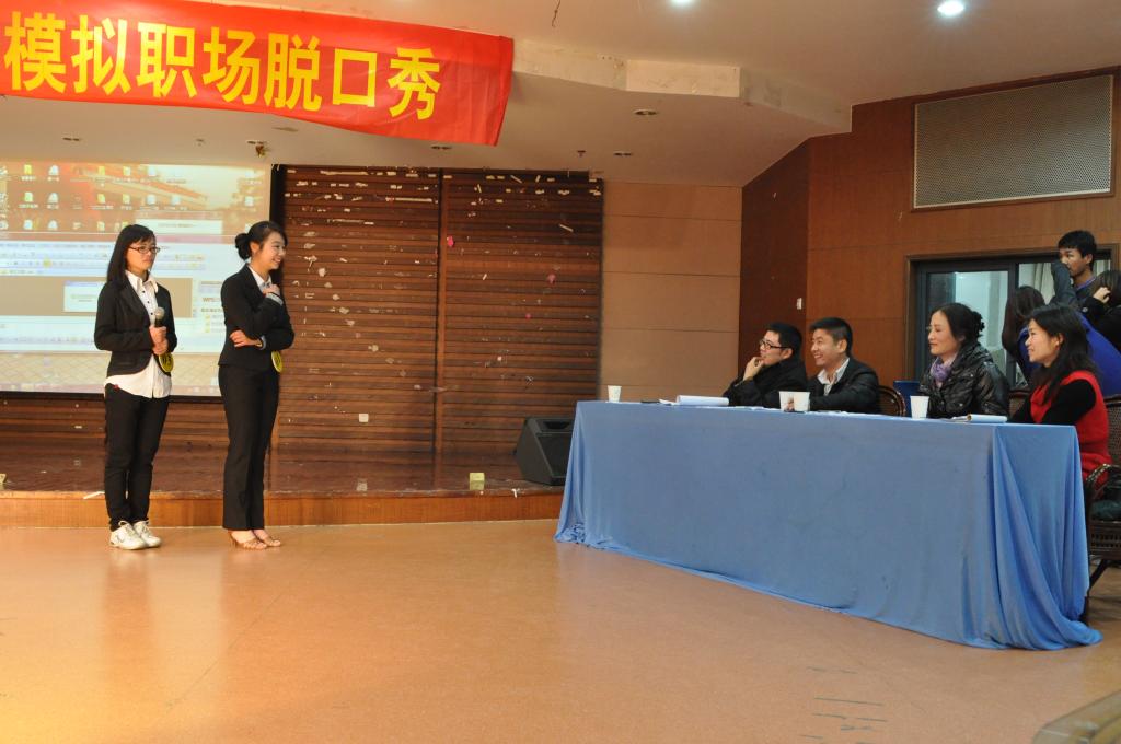 12月8日晚,由校学生会举办的首届女生文化节之“终极杜拉拉”模拟职场脱口秀在活动中心三楼绿梦休闲吧正式开赛。活动旨在帮助女大学生尽早树立危机意识,引导女大学生化“被动就业”为“主动择业”,赢在职场起跑线。